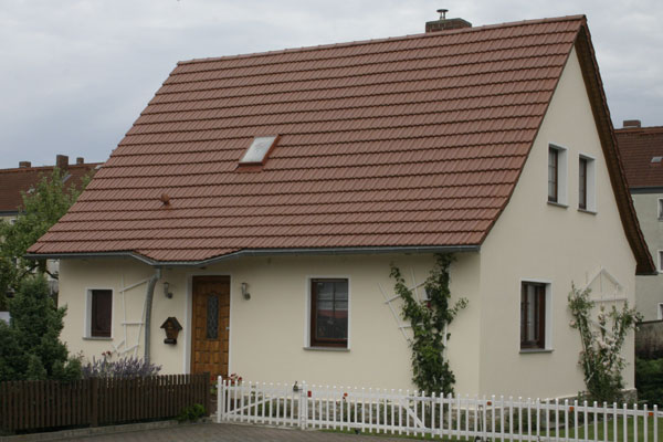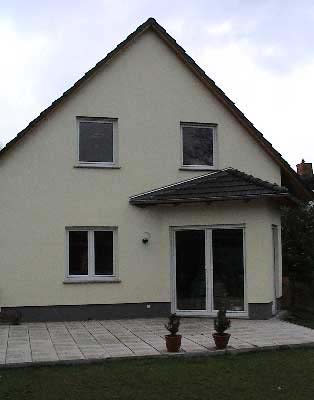 - Wärmedämmverbundsystem und Strukturputz am Giebel